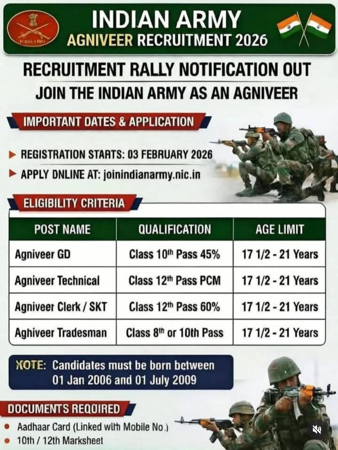 🔹 Agniveer GD / Technical / Assistant / Tradesman
