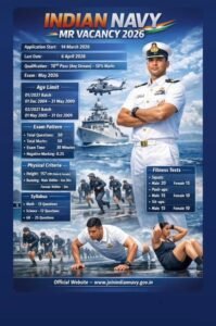 Indian Navy MR Recruitment 2026 ಮೂಲಕ 10ನೇ ತರಗತಿ ಪಾಸ್ ಮಾಡಿದ ಅಭ್ಯರ್ಥಿಗಳಿಗೆ ನೌಕಾಪಡೆಯಲ್ಲಿ ಕೆಲಸ ಮಾಡುವ ಅವಕಾಶ ದೊರೆಯುತ್ತಿದೆ. ಇದು ಕೇವಲ ಉದ್ಯೋಗವಲ್ಲ, ಇದು ದೇಶದ ಸೇವೆ ಮಾಡುವ ಗೌರವಯುತ ಅವಕಾಶವಾಗಿದೆ.