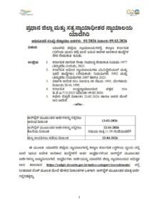 ಯಾದಗಿರಿಯ ಪ್ರಧಾನ ಜಿಲ್ಲಾ ಮತ್ತು ಸತ್ರ ನ್ಯಾಯಾಧೀಶರ ಕಚೇರಿ 2026 ನೇ ಸಾಲಿನ ಕರುಣಾಜನಕ (Compassionate) ನೇಮಕಾತಿಗಾಗಿ ಅಧಿಕೃತ ಅಧಿಸೂಚನೆಯನ್ನು ಬಿಡುಗಡೆ ಮಾಡಿದೆ. ಈ ನೇಮಕಾತಿಯು ಸಾಮಾನ್ಯ ಪರೀಕ್ಷೆಯ ಮೂಲಕ ನಡೆಯುವುದಿಲ್ಲ — ಬದಲಾಗಿ ಇದು ಸಂಕಷ್ಟದಲ್ಲಿರುವ ಕುಟುಂಬಗಳಿಗೆ ಸಹಾಯ ಮಾಡುವ ವಿಶೇಷ ಯೋಜನೆಯ ಭಾಗವಾಗಿದೆ.